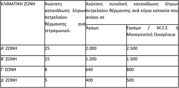 Η Υπουργική Απόφαση που υπογράφεται από τον υπουργό Οικονομικών Ευκλείδη Τσακαλώτο, τον αναπληρωτή υπουργό Οικονομικών Γιώργο Χουλιαράκη και την υφυπουργό Οικονομικών Κατερίνα Παπανάτσιου, προβλέπει ότι για τους δικαιούχους της Α΄ Κλιματικής Ζώνης το ποσό της επιδότησης αυξάνεται για τη χειμερινή σεζόν 2017-2018 στα 0,25 ευρώ ανά λίτρο πετρελαίου θέρμανσης, ενώ στις υπόλοιπες ζώνες παραμένει 0,125 ευρώ ανά λίτρο. Στην Α΄ Κλιματική Ζώνη συμπεριλαμβάνονται οι Νομοί Γρεβενών, Δράμας, Έβρου, Ευρυτανίας, Ιωαννίνων, Καστοριάς, Κοζάνης, Σερρών και Φλώρινας.