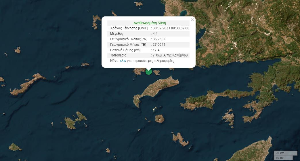 Σεισμός μεγέθους 4,1 Ρίχτερ σημειώθηκε πριν από λίγο στην Κάλυμνο.
