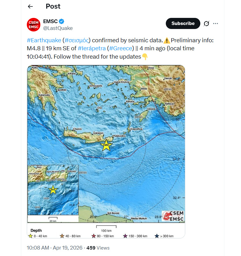 Η ανάρτηση του Ευρωμεσογειακού Ινστιτούτου για τον σεισμό στο Λασίθι
